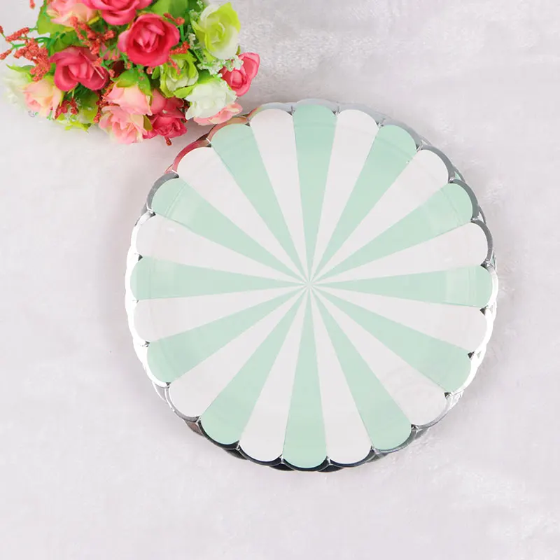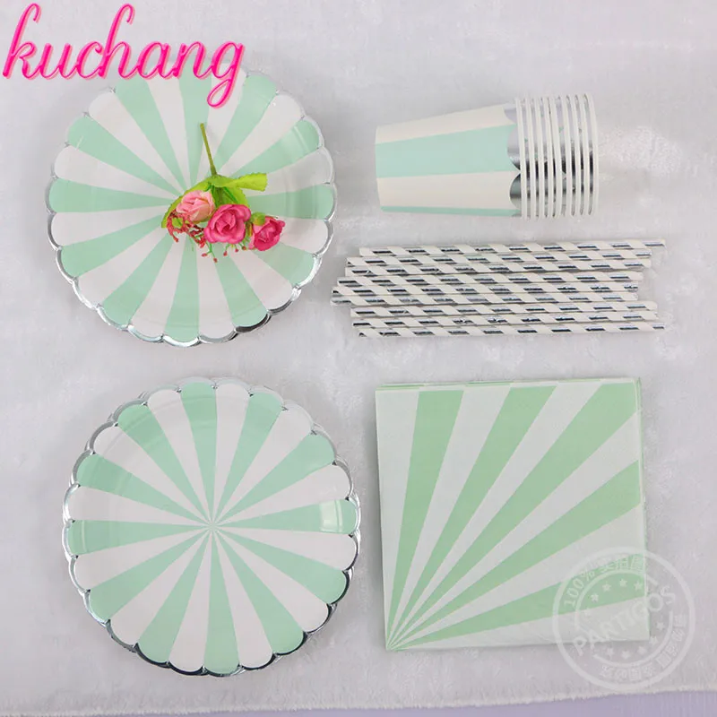 cheap Gilding High end Disposable Tableware Set Pink Green Striped Paper Plates Cups Napkins Party Wedding Carnival Supplies RECOMMENDED TODAY BUY Now LIMITED DISCOUNT TODAY