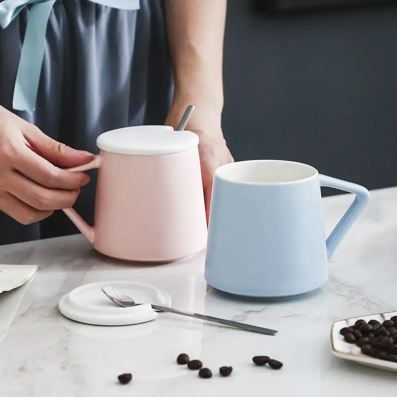 HOT OFFERS Couple Cup Ceramic Mug With Lid Spoon Ins Trend Drinking Home Breakfast Milk Female Korean Version Coffee Mugs Travel Discount Best Price Buy SPECIAL PRICE Limited