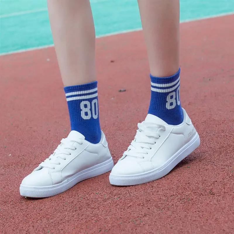 HOT OFFERS Womens Preppy Style Harajuku Cotton Crew Socks Double Striped Numbers Printed Japanese Baseball Sports Mid Tube Hosiery Inexpensively Price BUY Now LIMITED DISCOUNT TODAY