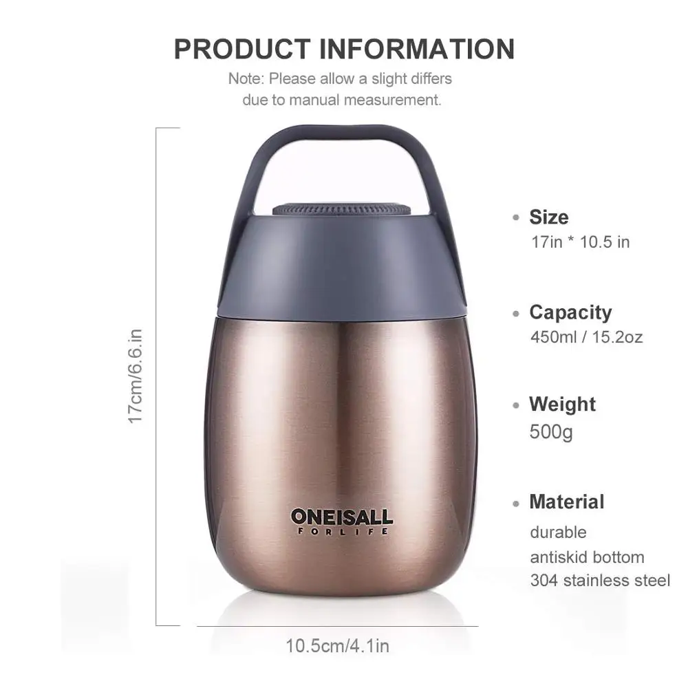 SPECIAL OFFERS OneIsAll Stew Food Container Thermos Bottle Thermal Flask for Food Soup Pot Lunch BOX with Spoon For Food amp;Soup Container one of the best
