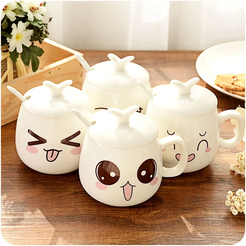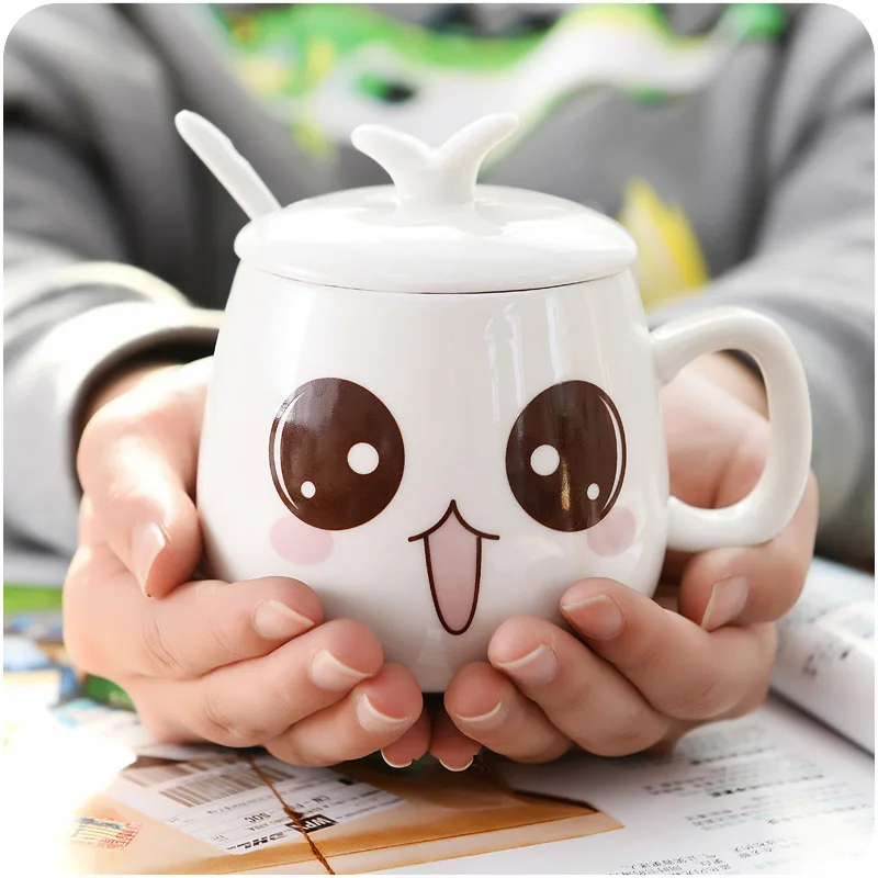 SPECIAL OFFERS Cartoon Ceramic Tea Coffee Milk Mug Cup Couple Glass Cup with Lid Spoon Handle Cute Face Mugs Children #039;s Drinking Utensils Gifts Online