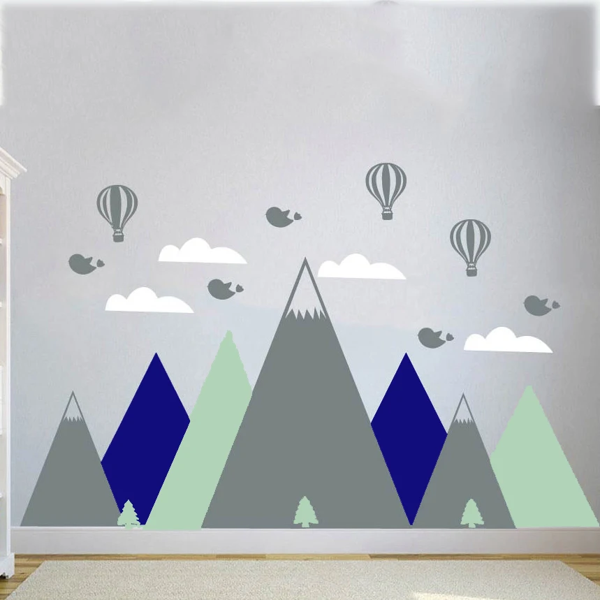 SPECIAL OFFERS Clouds Hot air Balloons Wall Decals For Kids Bedroom Decor Mountain Decal Art Nursery Wall Stickers Interior Mountains LC1308 Online
